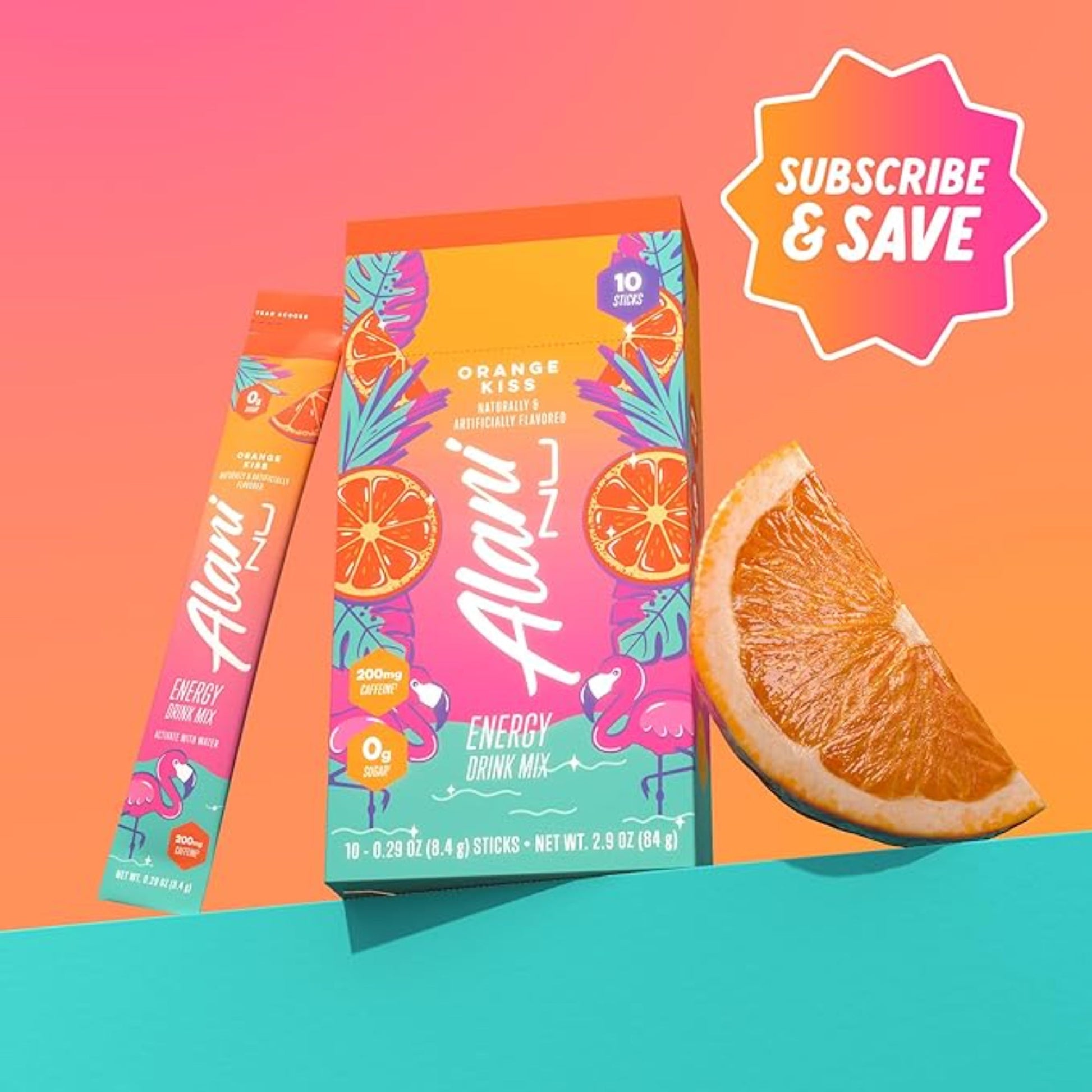 Alani Nu ORANGE KISS Energy Sticks, Energy Drink Powder, 200mg Caffeine, Pre Workout Performance with Antioxidants, On-The-Go Drink Mix, Biotin, B Vitamins, Zero Sugar, 5-10 Calories, 10 Pack
