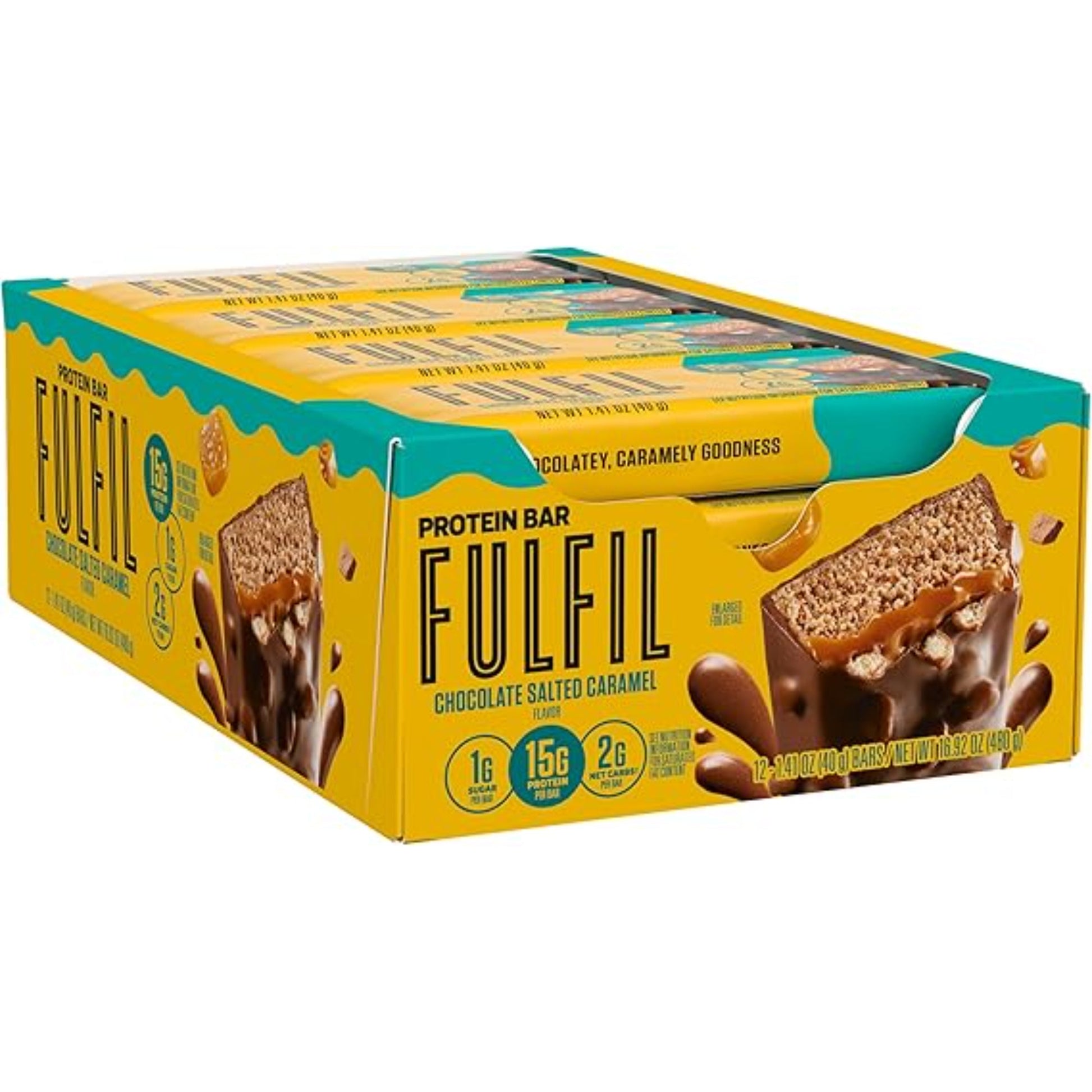 FULFIL Protein Snack Bars, Chocolate Salted Caramel Flavored, Gluten Free with 15g Protein, Pantry Staples, 12 Count